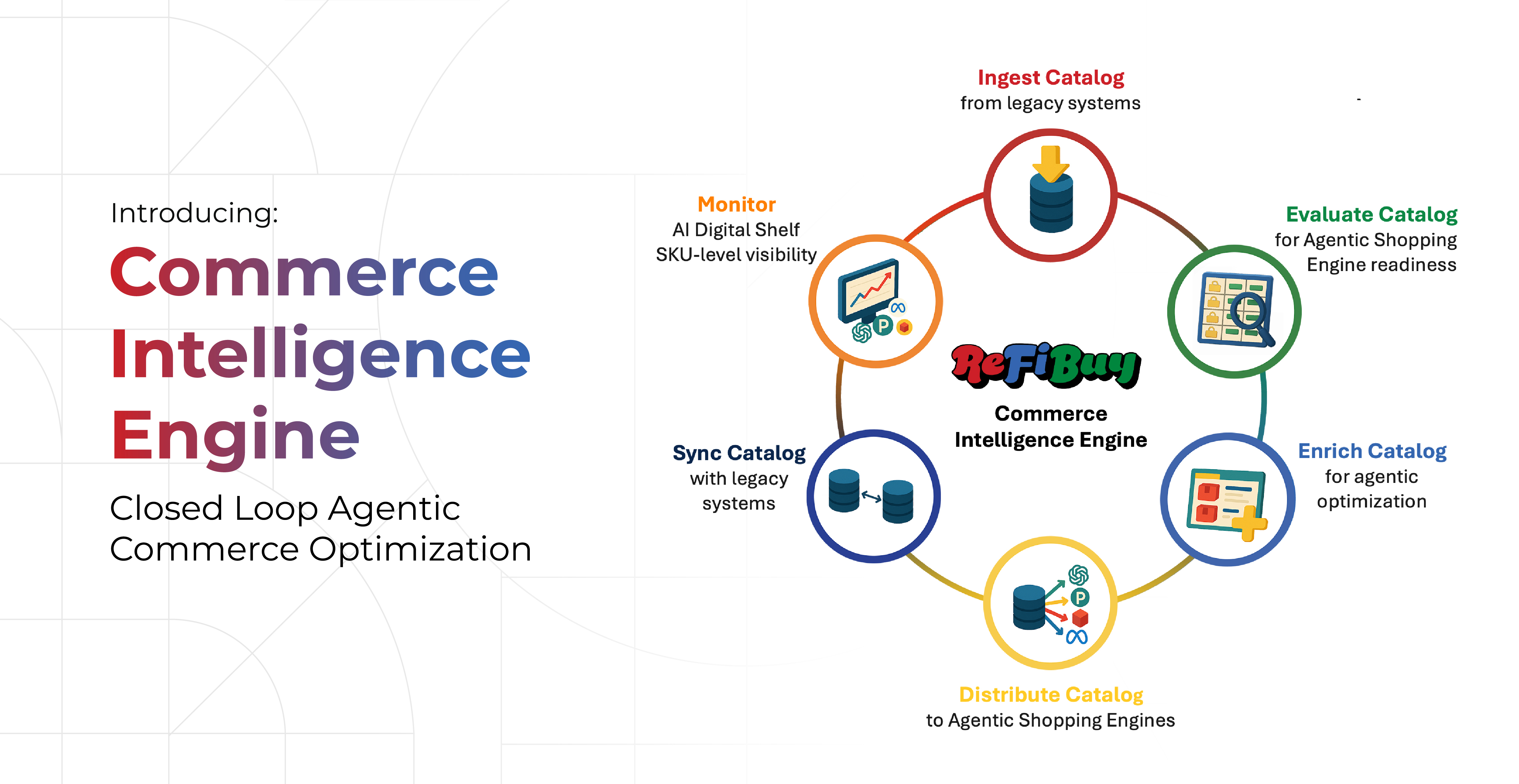 The Digital Commerce Industry's first agentic-native closed-loop learning platform that helps retailers, brands and agencies evaluate, enrich, distribute, and monitor their products on Agentic Commerce Engines such as ChatGPT, Google Gemini/AI Mode, Perplexity, Meta.ai, Microsoft Copilot, Grok and Claude.